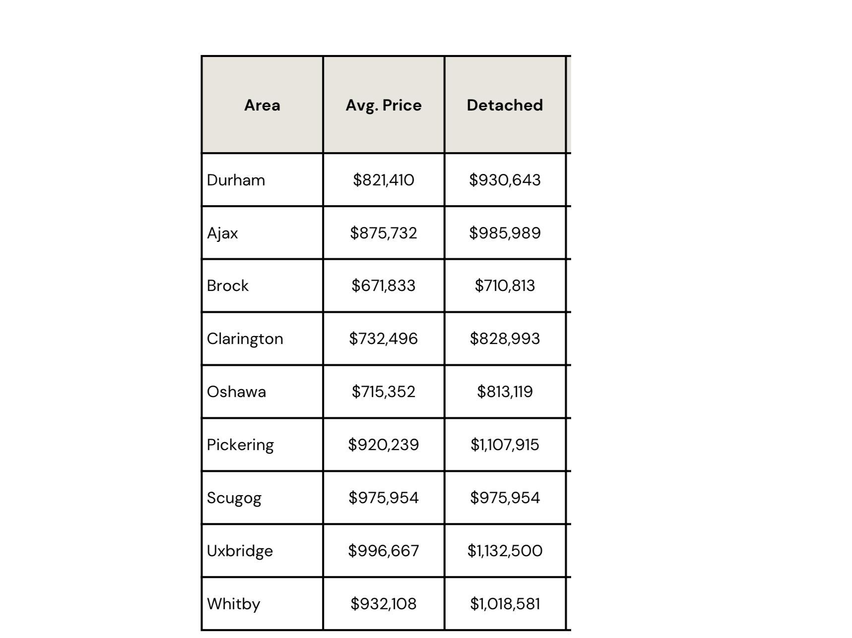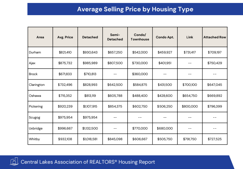 Want to know what's going on in the various cities in Durham Region regarding average home sale prices?